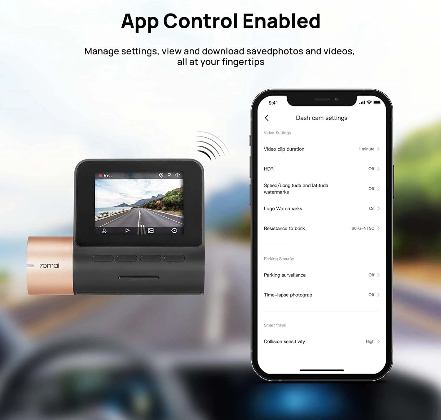 - 【In-app Control & Footage Sharing】Sharing is not a problem anymore with the latest version of 1080P dash cam Lite 2, the 70mai App supports both iOS & Android systems, allowing you to view and download videos via Wi-Fi hotspot connection. In case of an accident, you can simply share the footage with your insurance provider for a more efficient claims process. Also, this function enables you to achieve continuous OTA updates by automatically fixing bugs and updating software