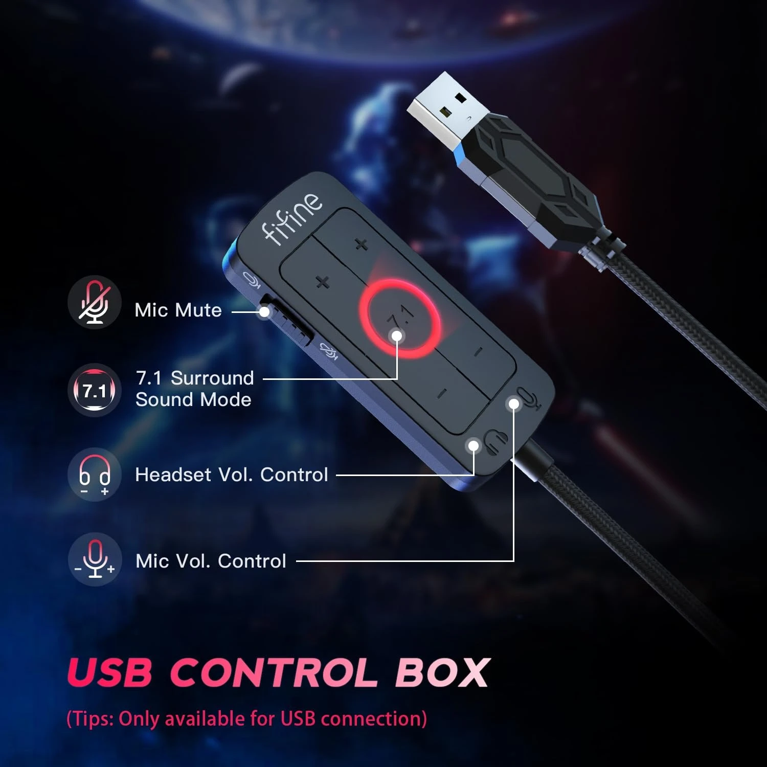 FIFINE Wired Gaming Headset, USB Headphone with 7.1 Surround Sound, Detachable M