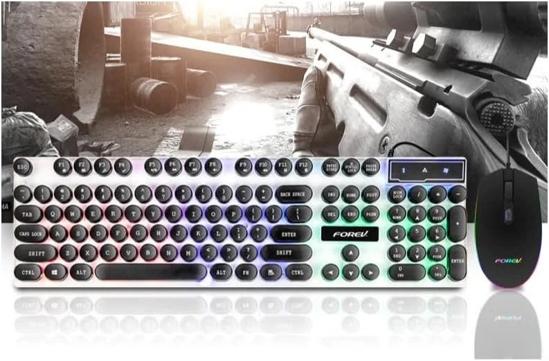 Keyboard and Mouse Combo (FV-Q90) USB Wired Multi-color Rainbow LED Backlights 8